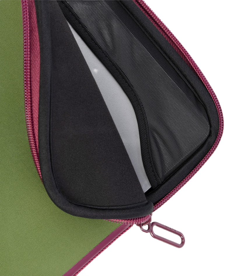 Contrasting color borders and distinctive shades characterize the Elements cover, designed to protect MacBook as well as laptops. It is made with material partially produced from recycled plastic. Featuring our Anti-Slip-System inner band, designed to secure your device in place, and Flat-lock stitching for minimal thickness as well as a snug fit, the Second Skin Elements’ protective inner compartment is lined with soft, scratch-resistant material.
